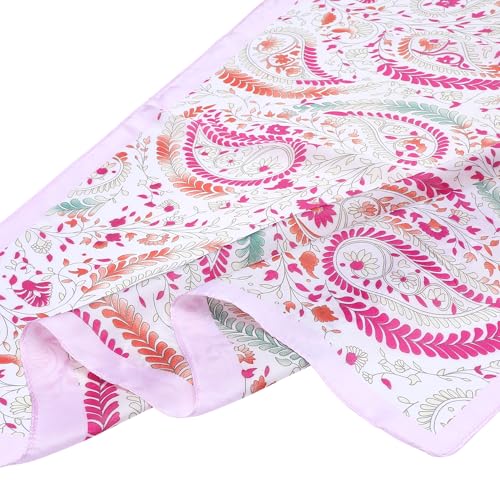Fabric type: 100% PolyesterCare instructions: Hand Wash OnlyOrigin: ImportedMaterial: 100% polyester. Satin fabric. This scarf fabric is smooth, lightweight and breathable, not only suitable for spring and autumn, but also for summer wear. Lovely floral collocation, simple and lovely, easy to match, suitable for women of all ages.Color: There are different colors and different flowers to choose from, please see the color and pattern in the description for details. Size: 70x70cm/27.6x27.6 in square shape.Feature: With floral patterns, Including lily, peony, lotus, butterfly flower, two-color flowers, oil painting vase, paisley, leaf, plum blossom and other patterns. With the romantic atmosphere of spring, looks simple, elegant and versatile, a perfect accessory for any season. Classic floral satin scarf, match well with your polka Wave point dress, floral dress, etc.Versatile Usage: The floral printed scarf can be worn in different ways. It can be tied as your neckerchief scarves, bag handle wrap, decor for handbags or tote, scarf bracelet, hair sash, hairbands, headband or wristband. Also goes well with your spring, summer or fall outfit like shirts, blouses, jeans, dresses, T-shirts, uniforms, pants, etc.Nice Gift: The flowers silky neckerchief is a wonderful gift for your sister, mom, girlfriend, friends, daughter, colleagues and so on. Perfect for Birthday, Wedding Anniversary, Mother's Day,50's Costume Party. Perfect for everyday use. first-class materials and excellent craftsmanship ensure long-lasting durability.