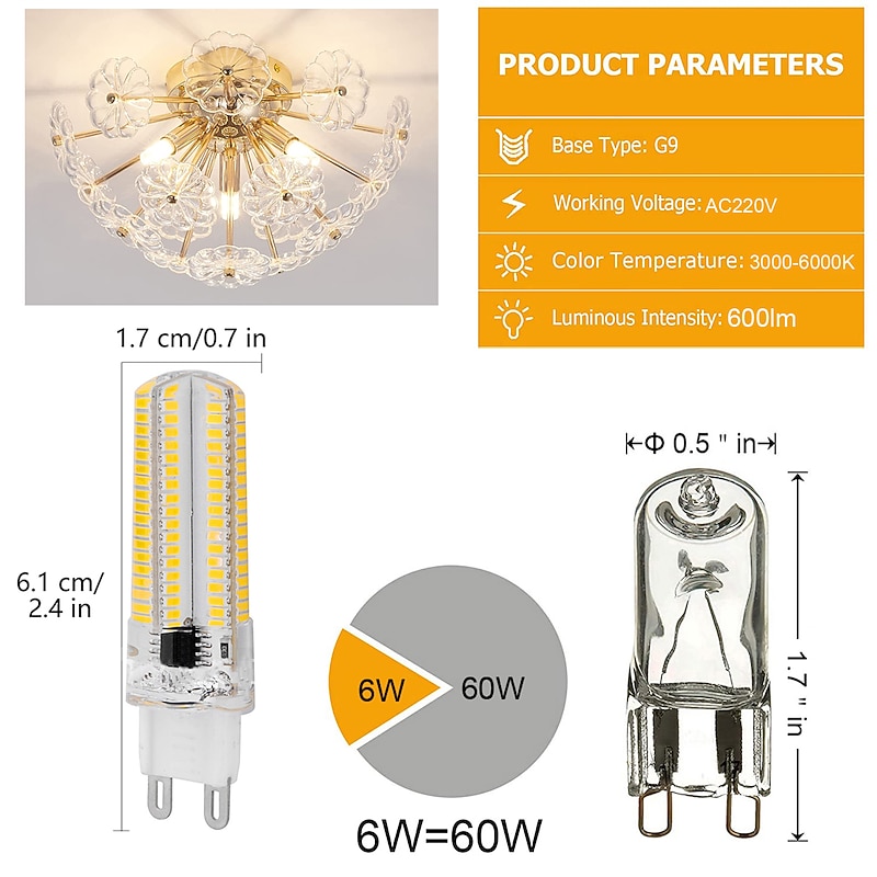$25.64 - 2/5pcs 6W LED Bi-pin Lights Bulb 600 lm G9 3014 x 104 SMD LED Beads Warm White White AC220-240V 2025. Shop for cheap LED Bi-pin Lights online? Buy at lightinthebox.com on sale today!