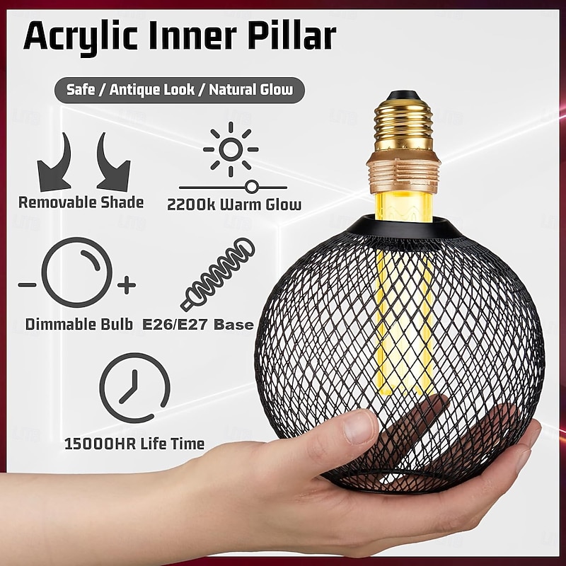 $15.99 - Decorative Light Bulb Black Metal Cage 5W LED Light Bulb White Glass Lampshade 8W E26/E27 LED Light Bulb Base Warm White Edison Decorative Light Bulb Suitable for Home Kitchen and Dining Room 2025. Shop for cheap LED Globe Bulbs online? Buy at lightinthebox.com on sale today!