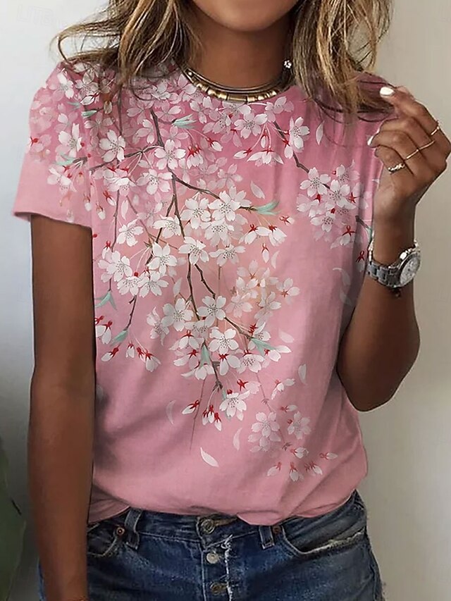 This Women's T Shirt Floral Casual Short Sleeve Round Neck Regular Tops Daily Print Pink Blue Summer combines elegant design with practical functionality. Every detail has been carefully considered to ensure you get the ultimate possible experience. The first-class construction means this product will serve you well for years to come.