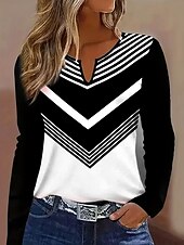 This Women's T Shirt Color Block Striped Casual Long Sleeve Notched Neck Regular Tops Daily Print Black Spring Fall combines elegant design with practical functionality. Every detail has been carefully considered to ensure you get the best possible experience. The magnificent construction means this product will serve you well for years to come.