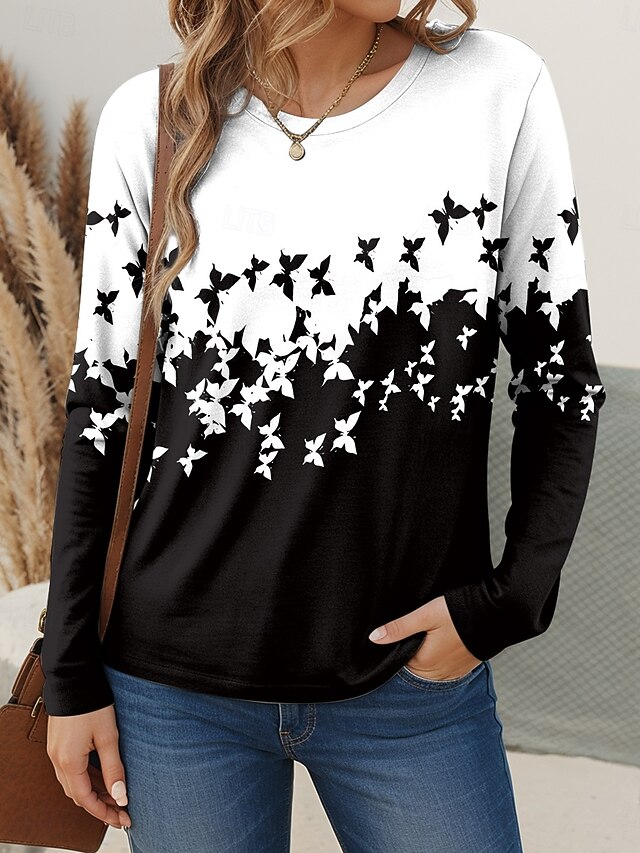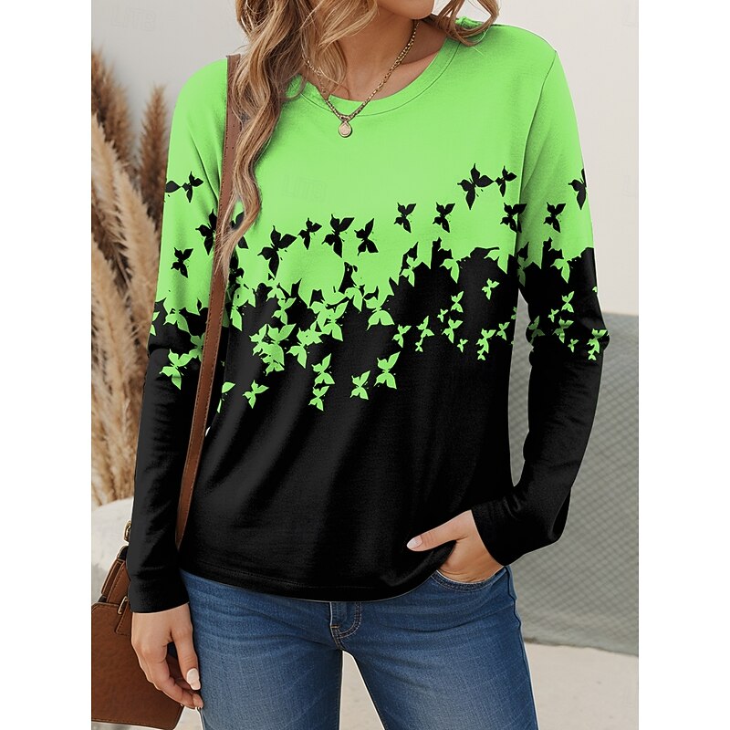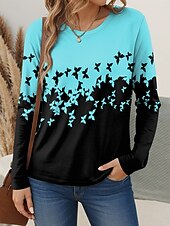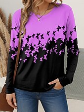 This Women's T shirt Crew Neck Long Sleeve Tunic Graphic Butterfly Vintage trendy Modern Regular Tops Daily Print White Pink Blue Purple Green Fall combines elegant design with practical functionality. Every detail has been carefully considered to ensure you get the best possible experience. The top-grade construction means this product will serve you well for years to come.