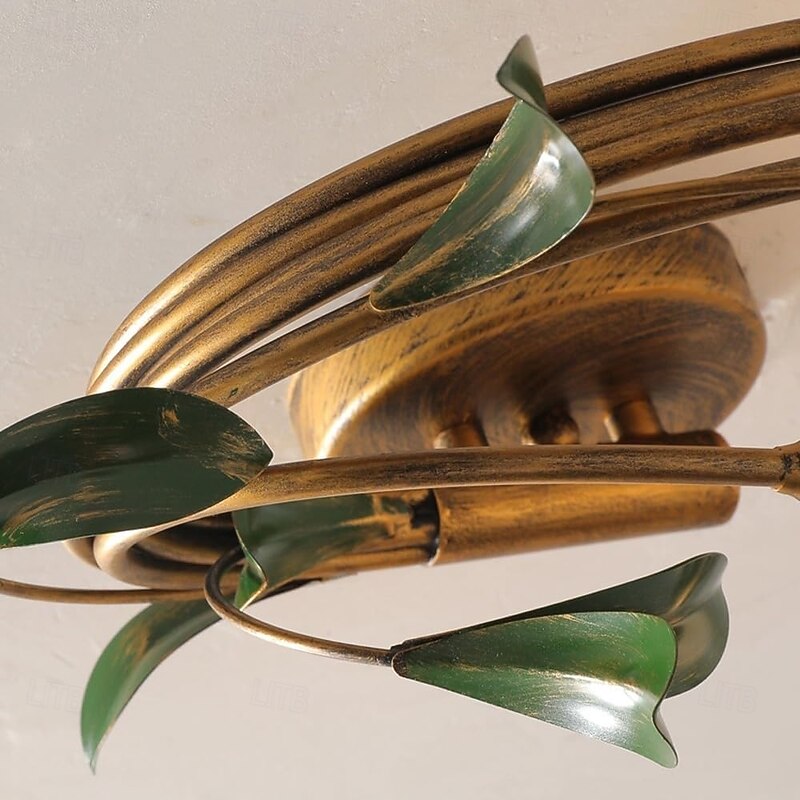 6-Light Floral Ceiling Light, Vintage Tulip Flower Semi-Flush Mount Ceiling Lamp, Gold Metal Branch with Frosted Glass Shades for Living Room, Bedroom 12