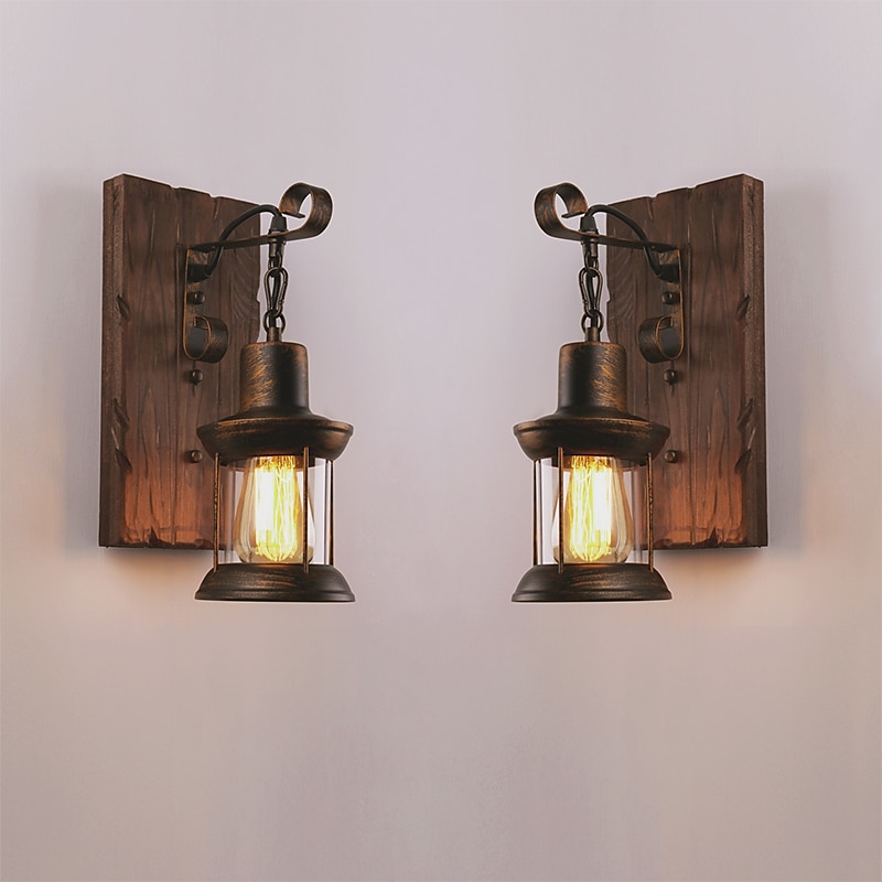33cm Creative Vintage Style Wall Lamps Wood / Bamboo Lantern Design Wall Sconces Iron Indoor Outdoor Bedroom Hallway Wall Light 110-120/220-240V 2