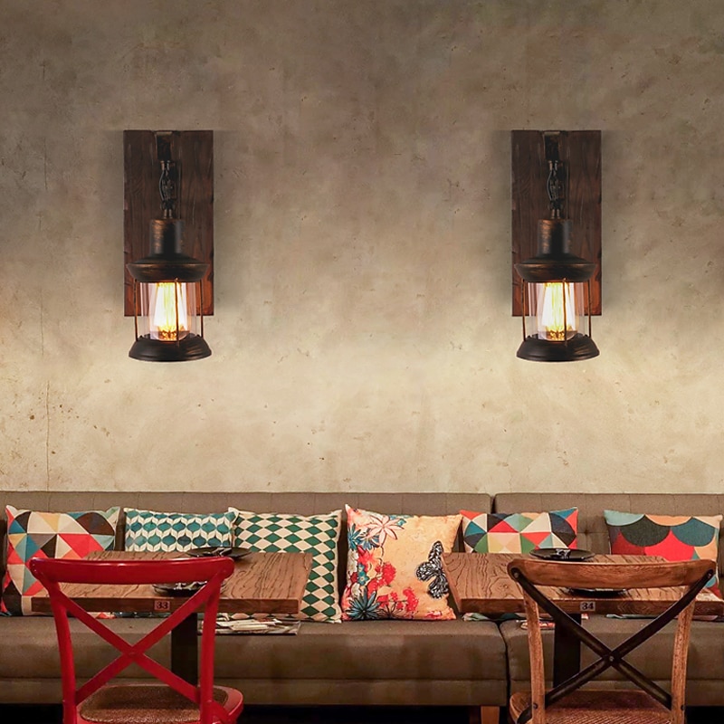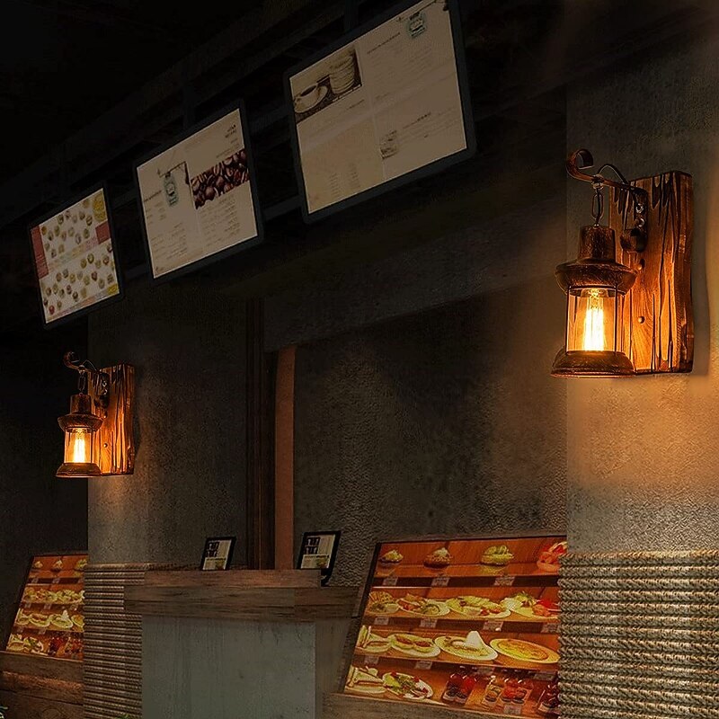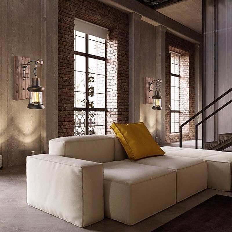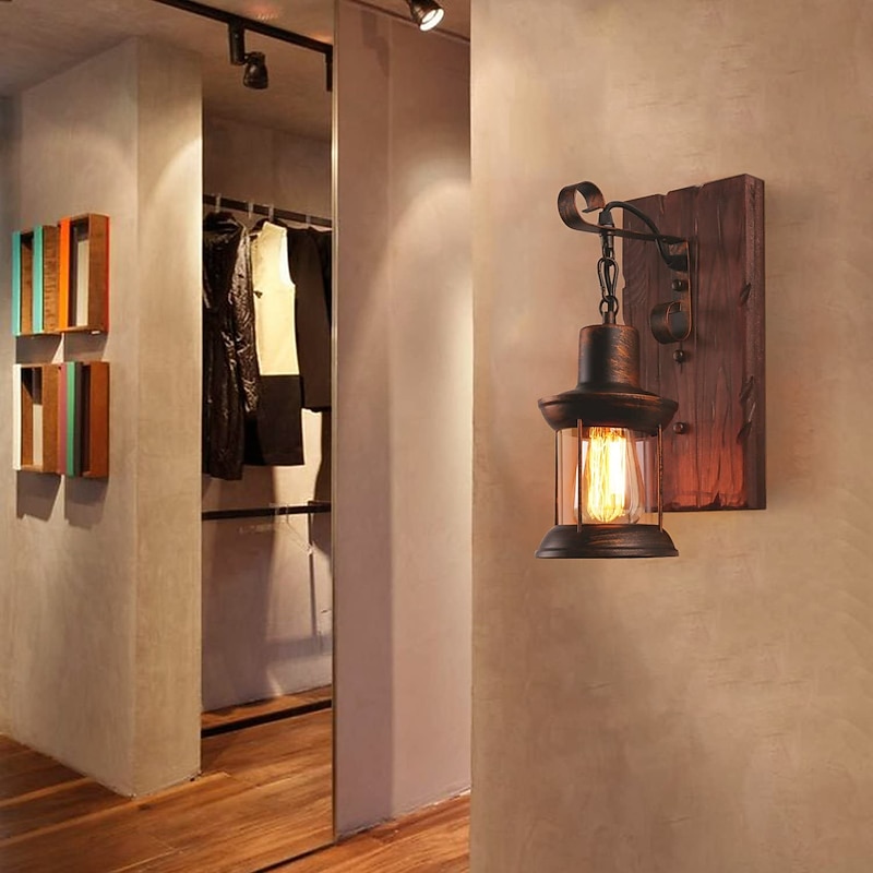 More information about 33cm Creative Vintage Style Wall Lamps Wood / Bamboo Lantern Design Wall Sconces Iron Indoor Outdoor Bedroom Hallway Wall Light 110-120/220-240V