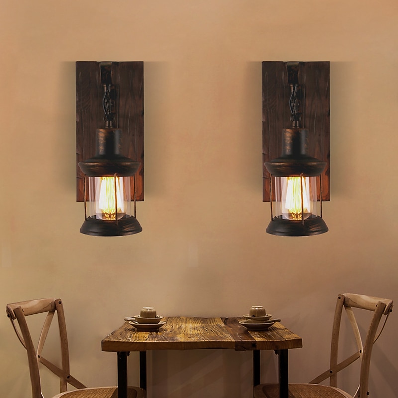 33cm Creative Vintage Style Wall Lamps Wood / Bamboo Lantern Design Wall Sconces Iron Indoor Outdoor Bedroom Hallway Wall Light 110-120/220-240V 18