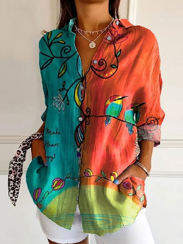 Why Choose Women's Shirt Button Down Tunic Shirt Collar Long Sleeve Floral Graphic Bird Daily fashionable Casual Regular Tops Work Daily s Print Red Blue Sky Blue Orange Green Spring?