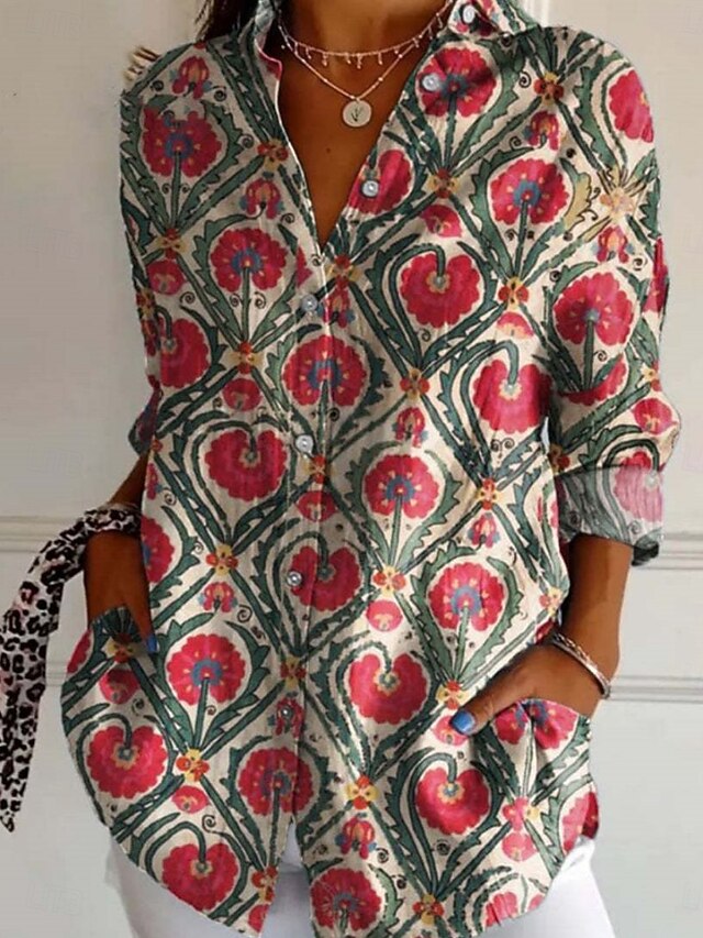 Why Choose Women's Shirt Floral present-day Modern Long Sleeve Shirt Collar Regular Tops Daily Holiday Buttons Print Black Yellow Sky Blue Green Summer?