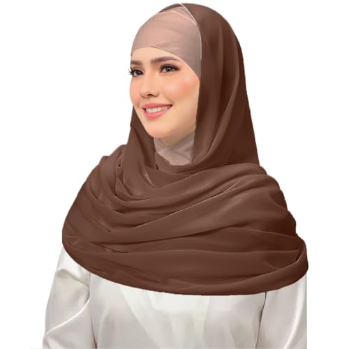 SIQITECHNO 2Pcs Modal Hijab Cap with Chiffon Shawl Muslim Stretchy Full Coverage Caps Hijab Scarves Long Scarf Wrap Scarves 6