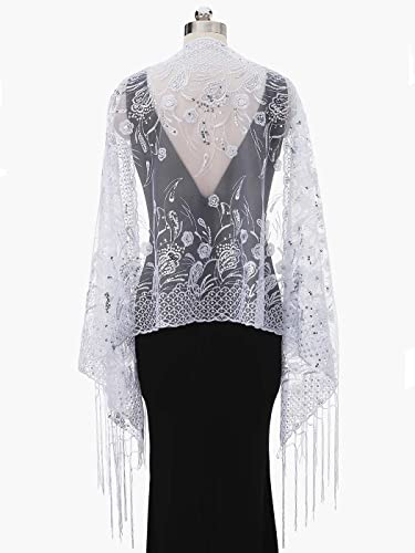 EASEDAILY Women's Shawls and Wraps for Evening Dresses Sparkling Sequin Wedding Scarf Fringe Stole for Bride and Bridesmaid 1