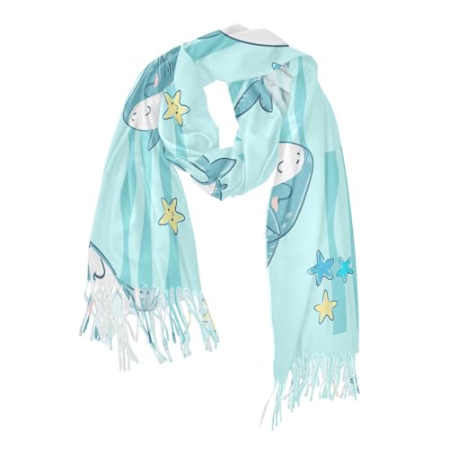 VIGTRO Women Wrap Pashmina Shawl Cute Shark Starfish Summer Cashmere Feel, Winter Warm Long Scarf with Tassels for Evening Dress & Wedding 1