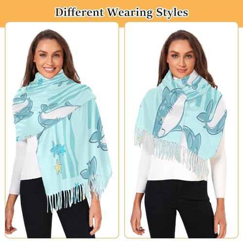VIGTRO Women Wrap Pashmina Shawl Cute Shark Starfish Summer Cashmere Feel, Winter Warm Long Scarf with Tassels for Evening Dress & Wedding 2
