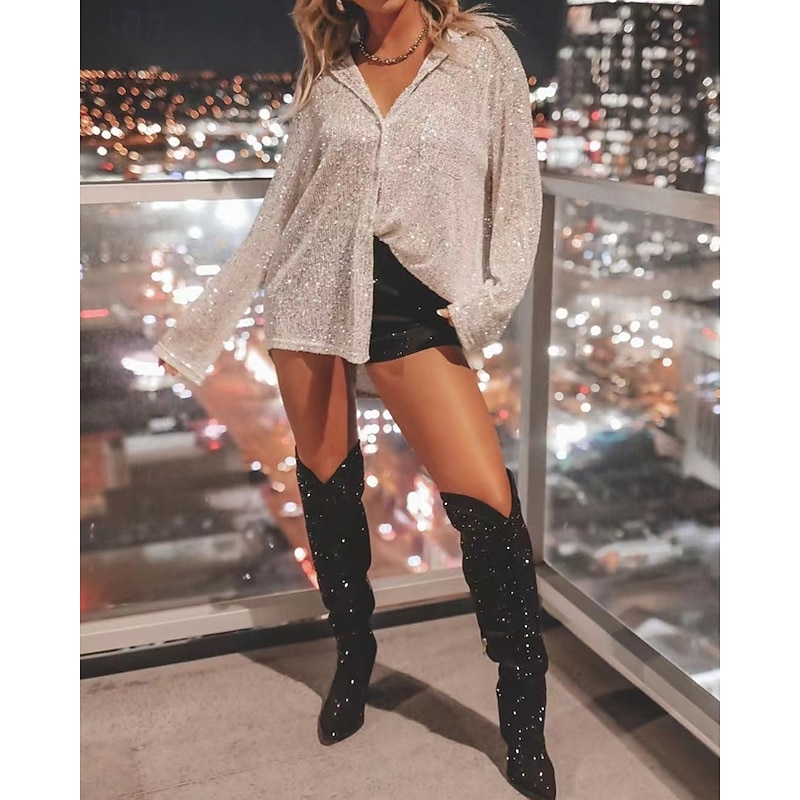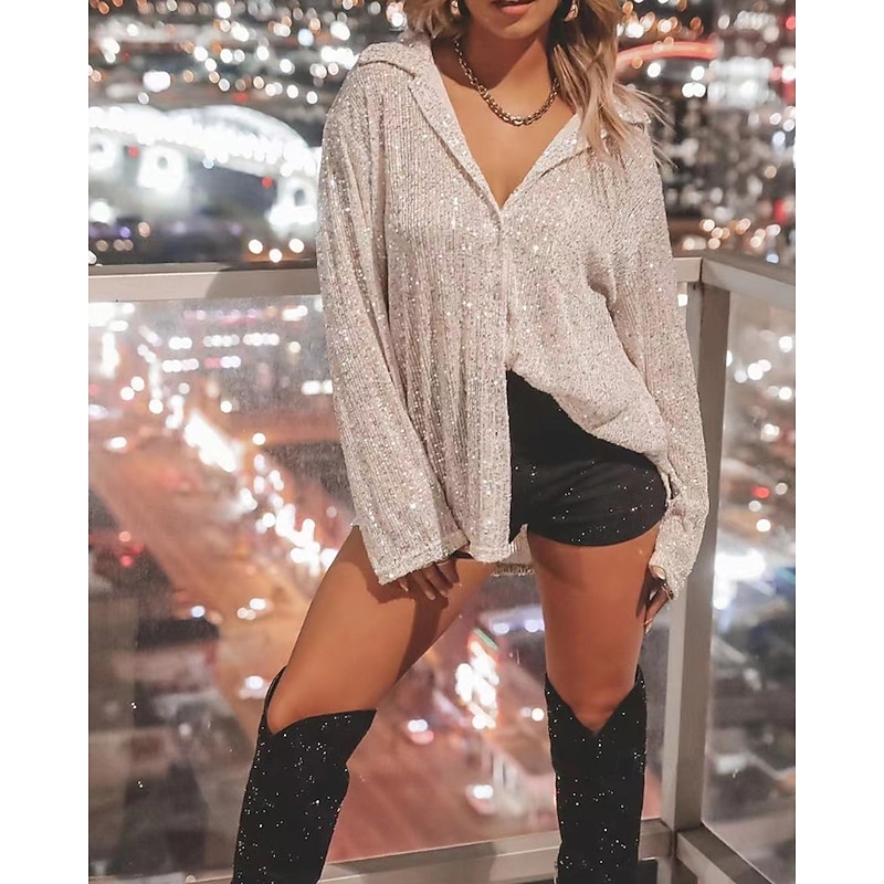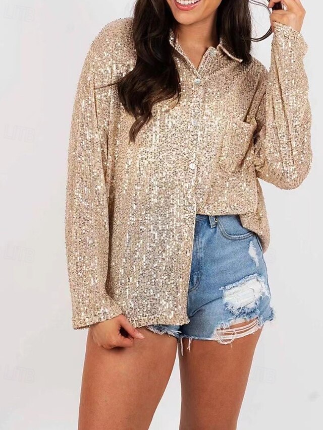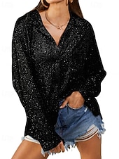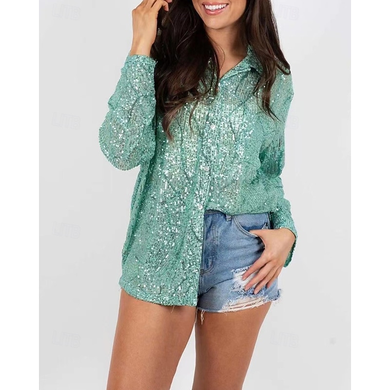 This Women's Shirt Texture Blouse Blouse Plain Party trendy Long Sleeve Shirt Collar Regular Tops Evening Party Party Outfits Sequins Black Silver Champagne Light Green Apricot Fall combines elegant design with practical functionality. Every detail has been carefully considered to ensure you get the best possible experience. The top-grade construction means this product will serve you well for years to come.