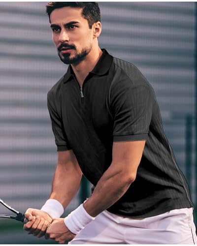 Muscle Polo Shirts for Men Slim Fit Textured Knit Polo Shirts Short Sleeve Mens Collared Shirts Casual contemporary
