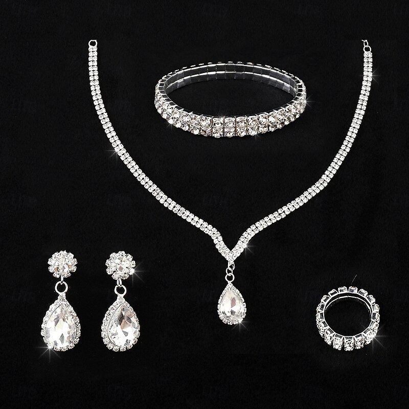 Why Choose Bridal Jewelry Sets 1 set Imitation Diamond Alloy Rings 1 Necklace 1 Bracelet Earrings Women's Artistic Jewelry Set For Wedding Wedding Guest Party Evening Wear?