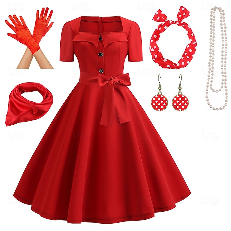 $46.99 - Women's A-Line Rockabilly Dress Polka Dots Swing Dress Flare Dress with Accessories Set 1950s Grease Outfits 60s Retro Vintage with Headband Chiffon Scarf Earrings Pearl Necklace Gloves 2025. Shop for cheap Outfits online? Buy at lightinthebox.com on sale today!