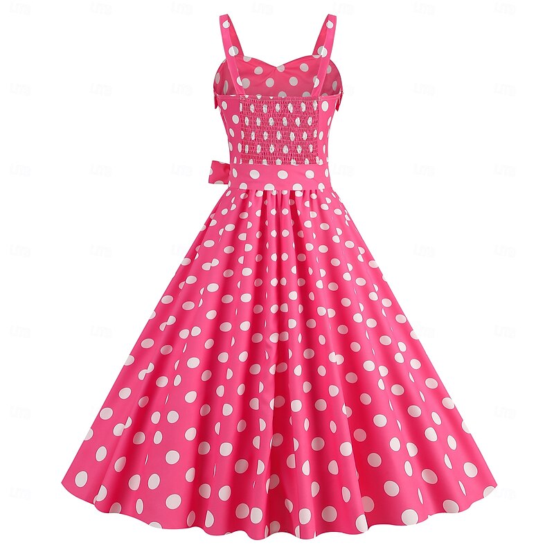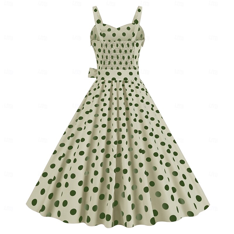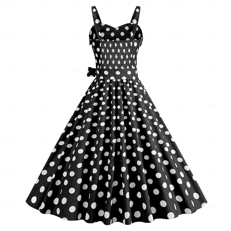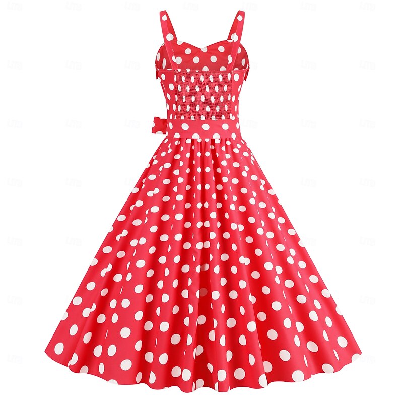More information about Retro Vintage 1950s Grease Outfits Rockabilly Midi Dress Swing Dress Flare Dress With Belt Spaghetti Strap Polka dots A-Line Fancy Dress Women's Carnival Daily Wear Tea Party Retro Adults Dress Spring