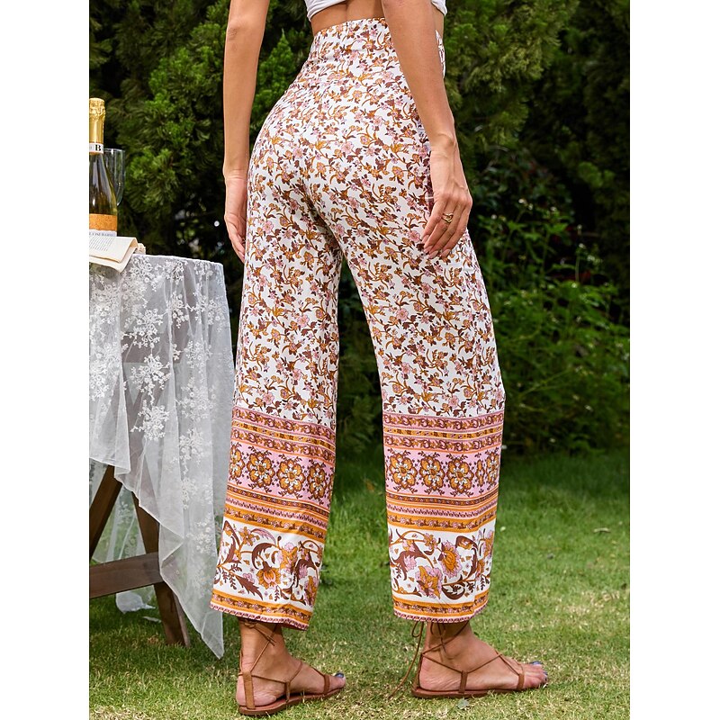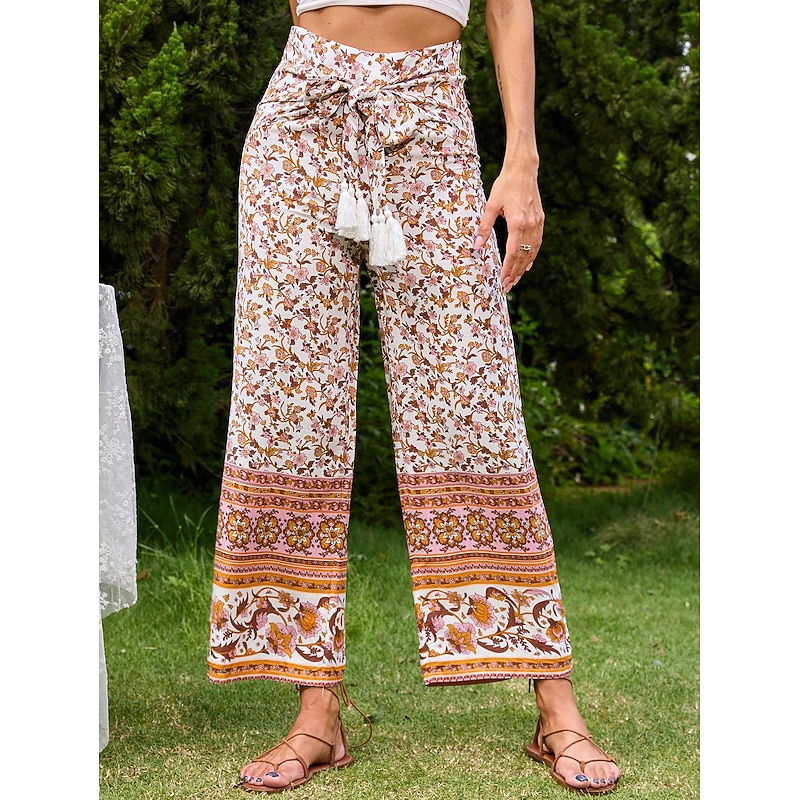 Why Choose Retro Vintage 1970s Ankle Length Pants Wide Leg Pants Hippie Tied Waist Floral Fancy Dress Women's Vacation Casual Daily Pride Parade Adults' Pants Spring & Summer?