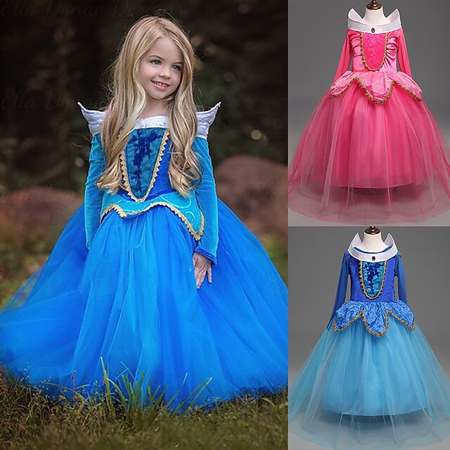 More information about Cinderella Dress Flower Girl Dress Girls' Movie Cosplay A-Line Slip Rosy Pink Blue Dress Christmas Masquerade World Book Day Costumes