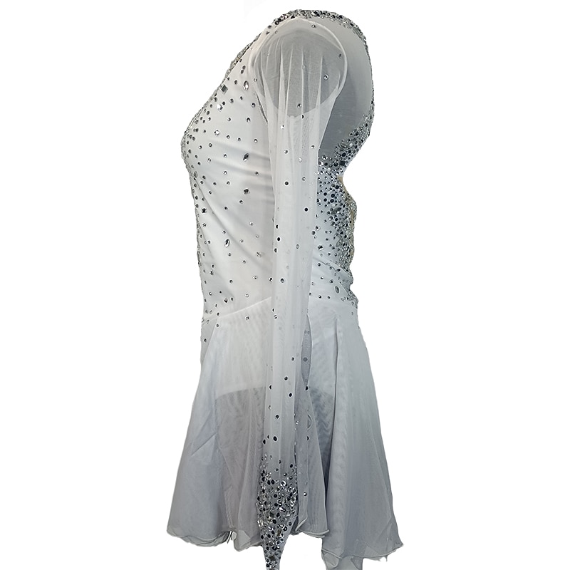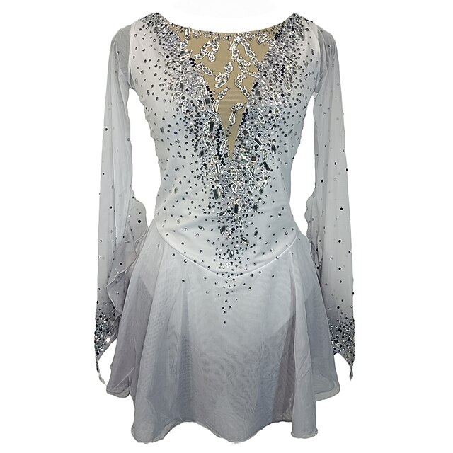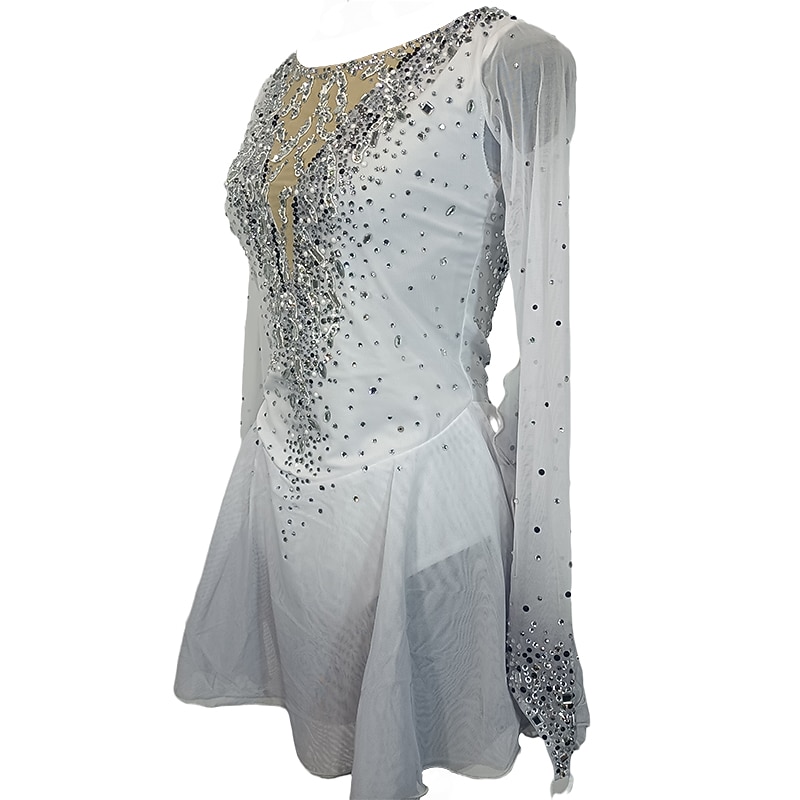 Why Choose Figure Skating Dress Women's Girls' Ice Skating Dress White Patchwork Thumbhole Mesh Spandex Stretchy Training Practice Professional Skating Wear Crystal / Rhinestone Long Sleeve Figure Skating?