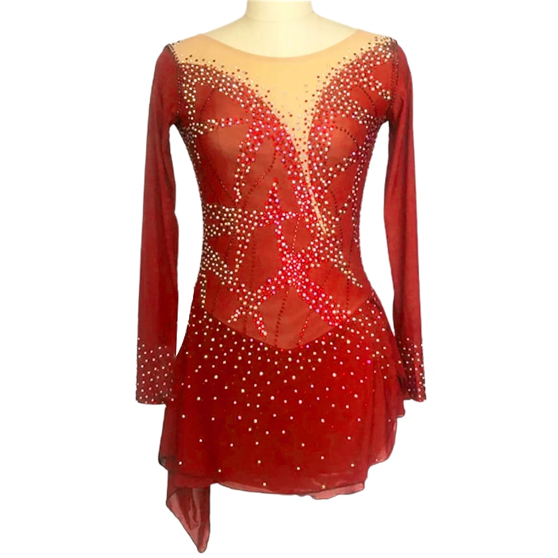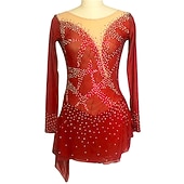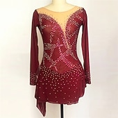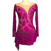 More information about Figure Skating Dress Women's Girls' Ice Skating Dress Black Purple Rosy Pink Spandex High Elasticity Training Competition Skating Wear Handmade Crystal / Rhinestone Long Sleeve Ice Skating Figure