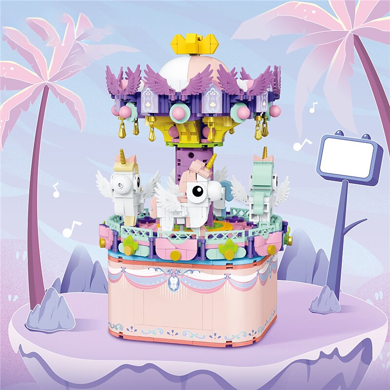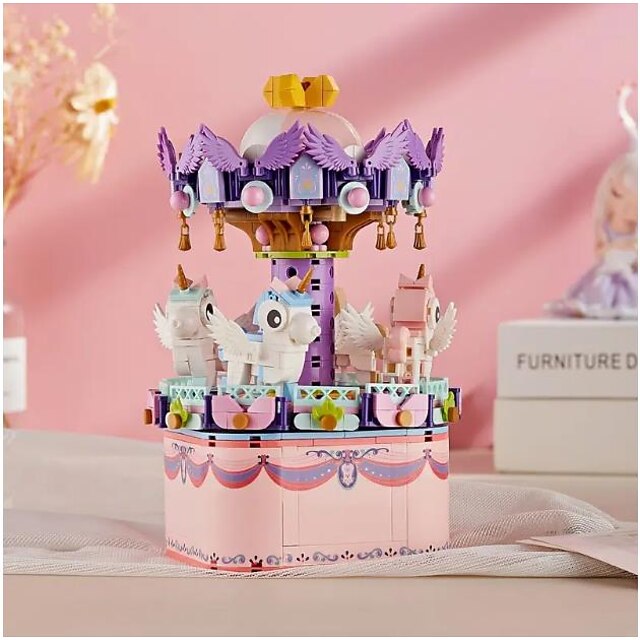 sizzling ! Building Blocks,885PCS /710Carousel Music Box Building Block Set. Construction Set To Build, Assembly Toy For Kids Adult A fabulous Gift For People Who Like Carousel