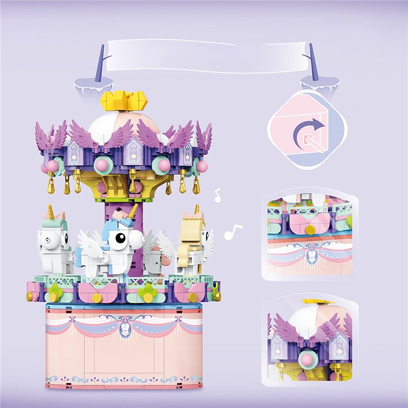More information about Building Blocks,885PCS /710Carousel Music Box Building Block Set. Construction Set To Build, Assembly Toy For Kids Adult A splendid Gift For People Who prefer Carousel