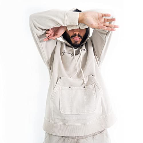 • Utility kangaroo pocket with rivets. Garment washed.