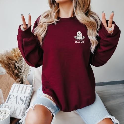 Why Choose Embroidered Dead Lift Ghost Sweatshirt, Spooky Ghost Family Tee Gift, Halloween Hoodie Embroidery, Halloween Vibe Gift, Ghost Gym Pocket Tee, Present for Her, Cute Thing Lover, Gymnastics Lover?