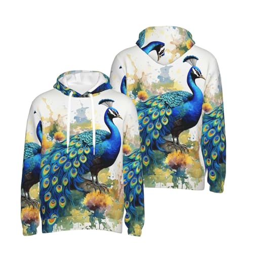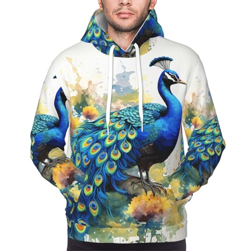 Men's Fleece Pullover Hoodie Long Sleeve Hooded Peacock Watercolor Painting Sweatshirt Casual Shirts With Pockets