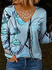 More information about Women's T shirt Long Sleeve V Neck Long Sleeve Tunic Graphic Abstract Vintage sophisticated retro Regular Tops Daily Print Blue Purple Green Khaki Spring Fall Prefall