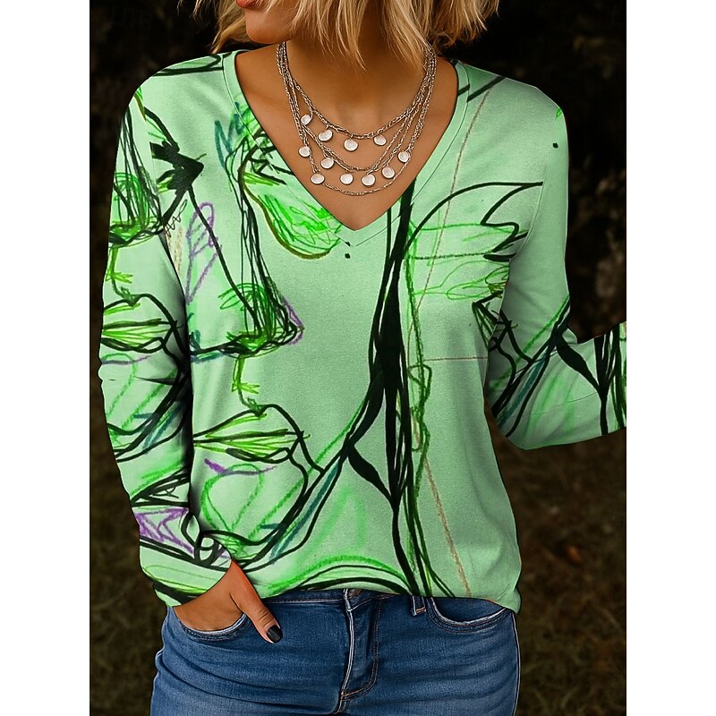 Women's T shirt Long Sleeve V Neck Long Sleeve Tunic Graphic Abstract Vintage Stylish Classic Regular Tops Daily Print Blue Purple Green Khaki Spring Fall Prefall 5