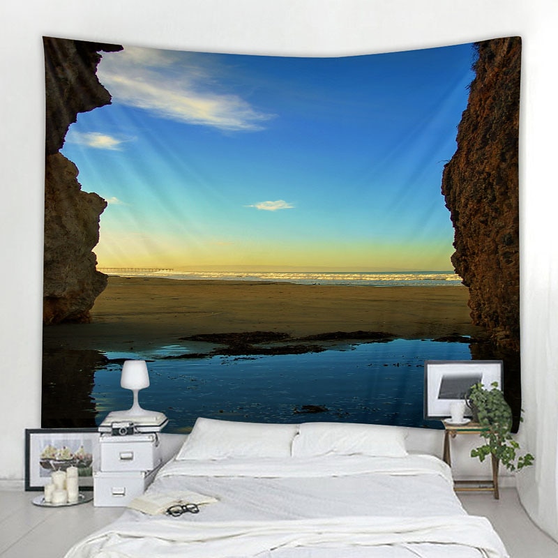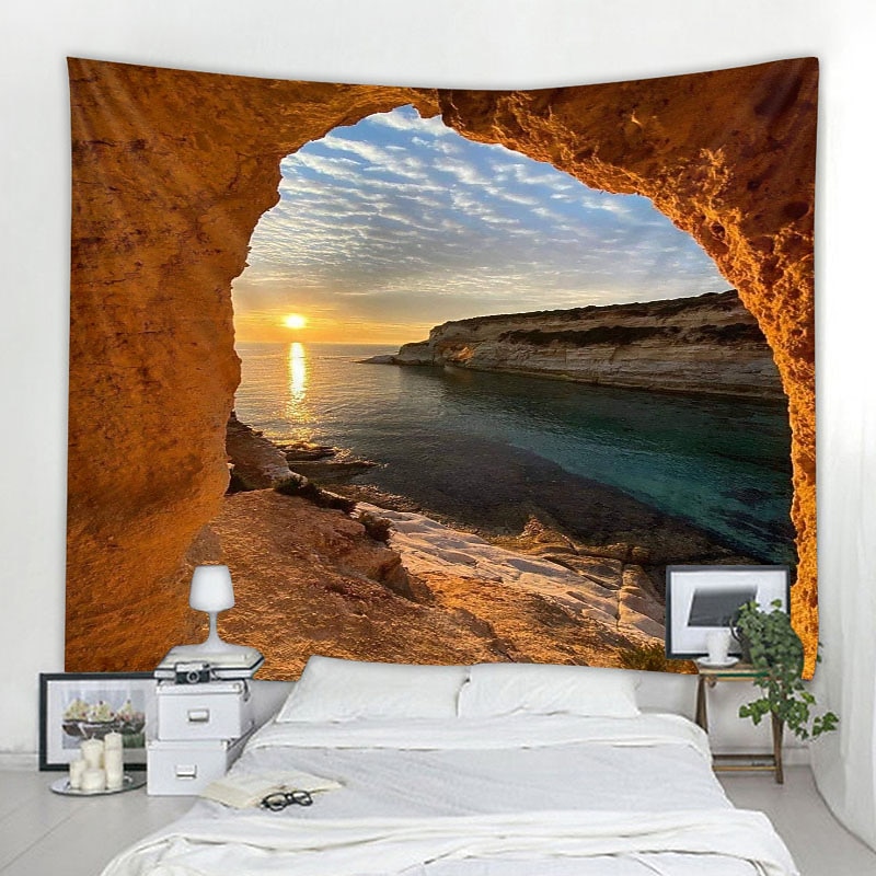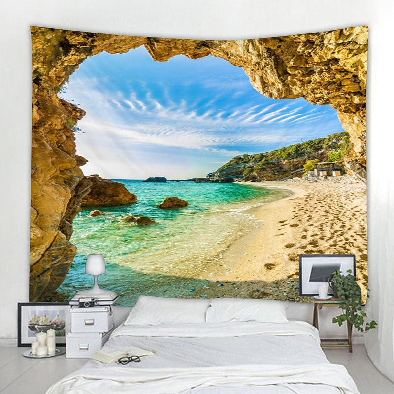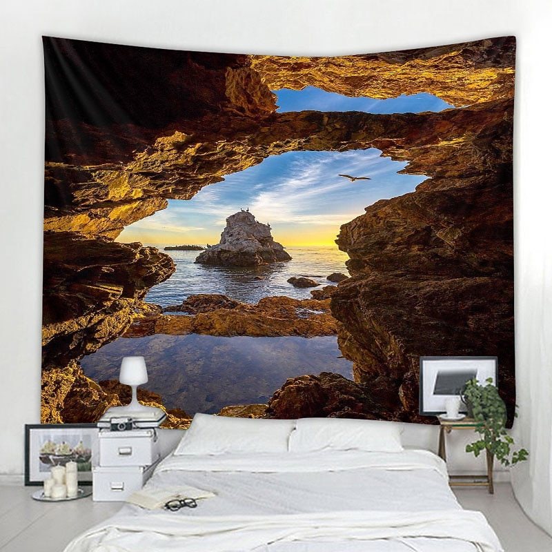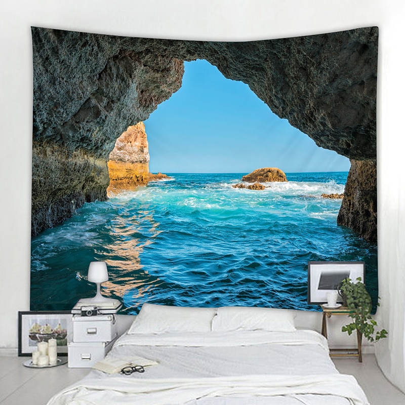 Ocean Wave Cave Wall Tapestry Art Decor Blanket Curtain Picnic Tablecloth Hanging Home Bedroom Living Room Dorm Decoration Nature Landscape Sea