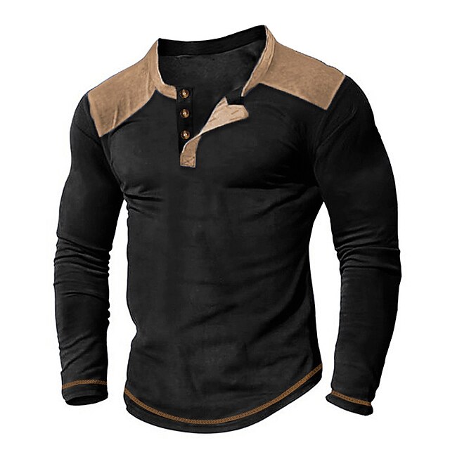 More information about Men's T shirt Tee Henley Shirt Tee Top Color Block Henley Street Vacation Long Sleeve Clothing Apparel Fashion Designer Basic