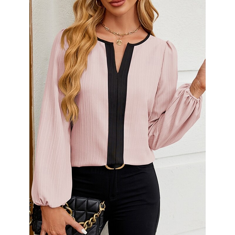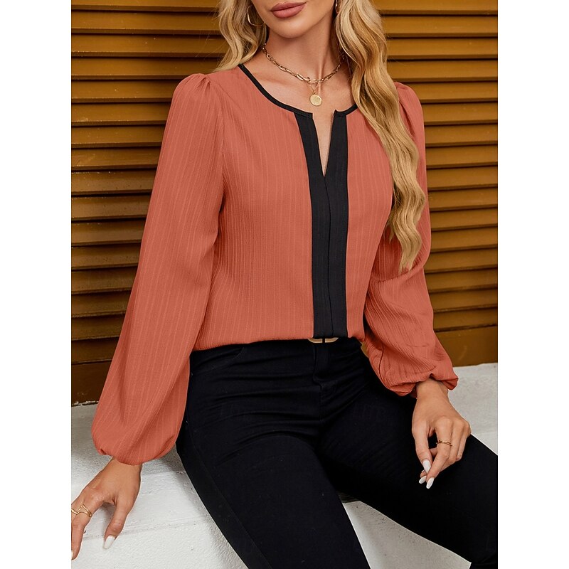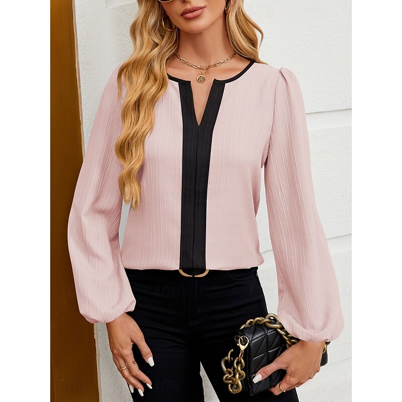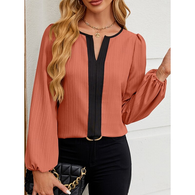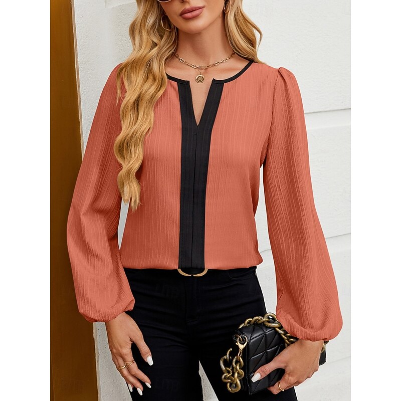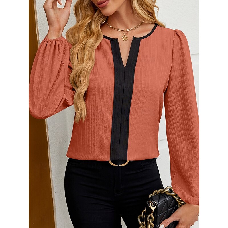 This Women's Shirt Solid Color trendy Casual Long Sleeve V Neck Regular Tops Daily Patchwork Pink Red Blue Apricot Spring Fall combines elegant design with practical functionality. Every detail has been carefully considered to ensure you get the best possible experience. The top-grade construction means this product will serve you well for years to come.