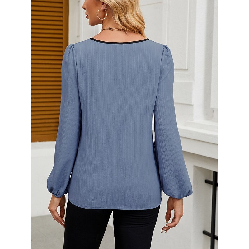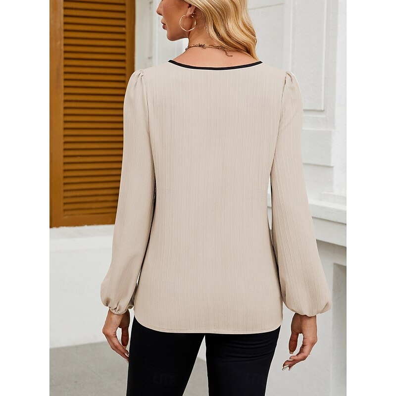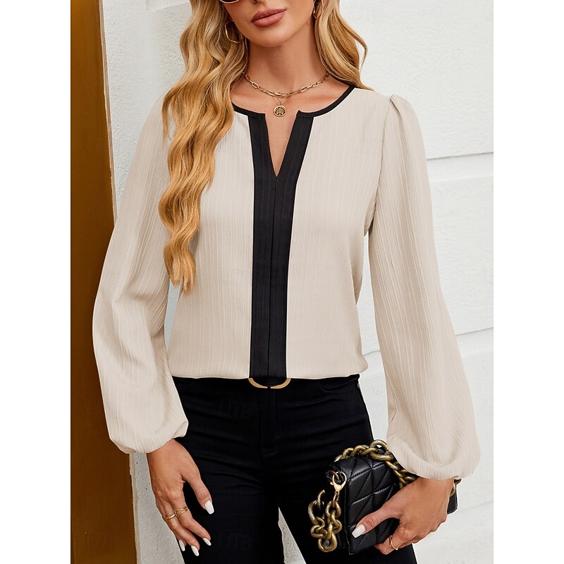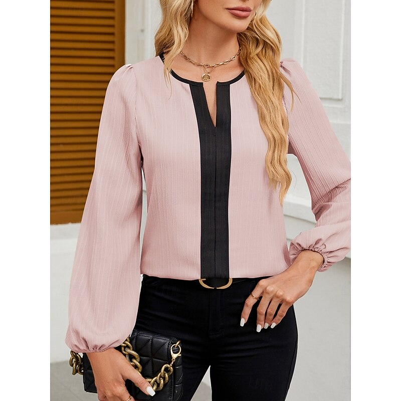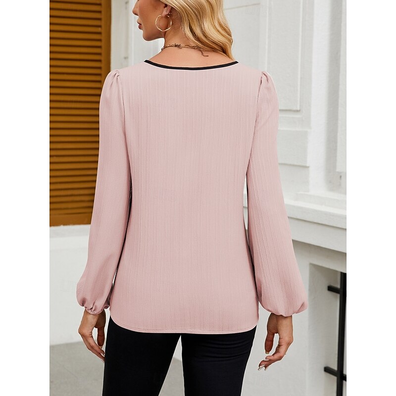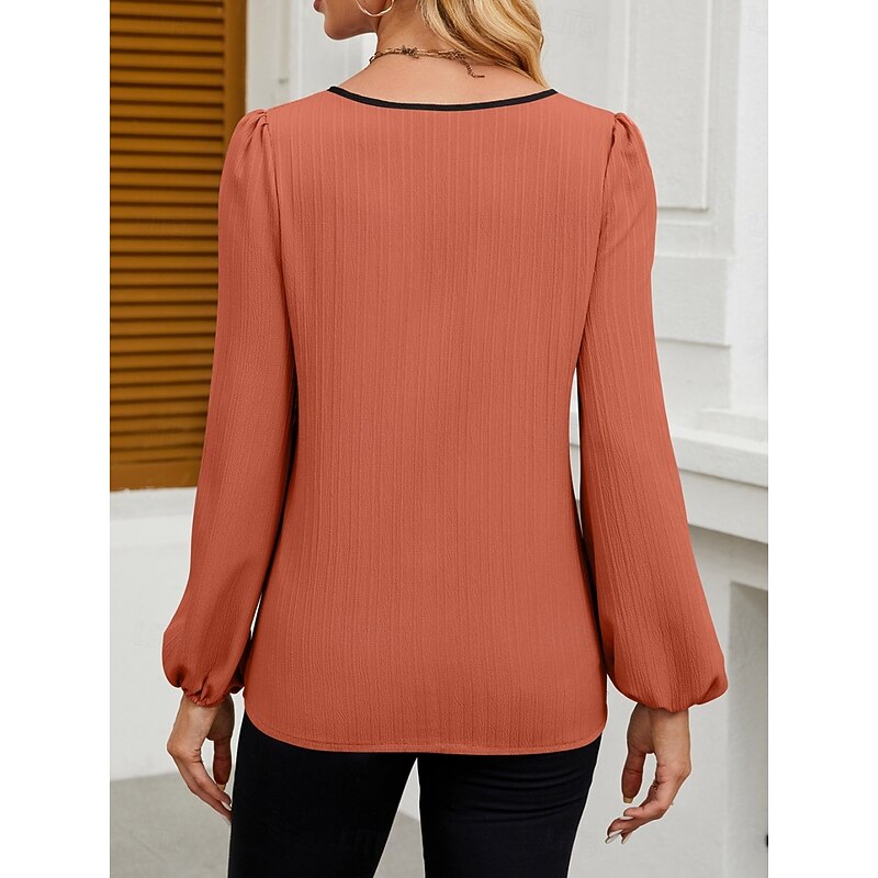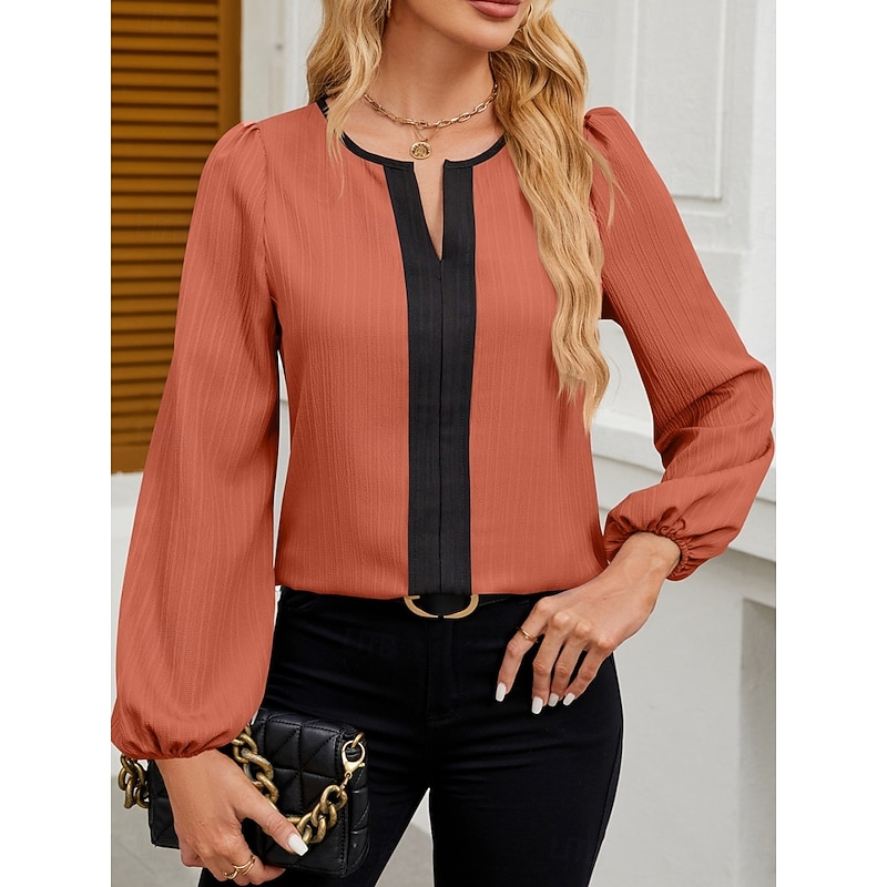 This Women's Shirt Solid Color trendy Casual Long Sleeve V Neck Regular Tops Daily Patchwork Pink Red Blue Apricot Spring Fall combines elegant design with practical functionality. Every detail has been carefully considered to ensure you get the best possible experience. The top-grade construction means this product will serve you well for years to come.