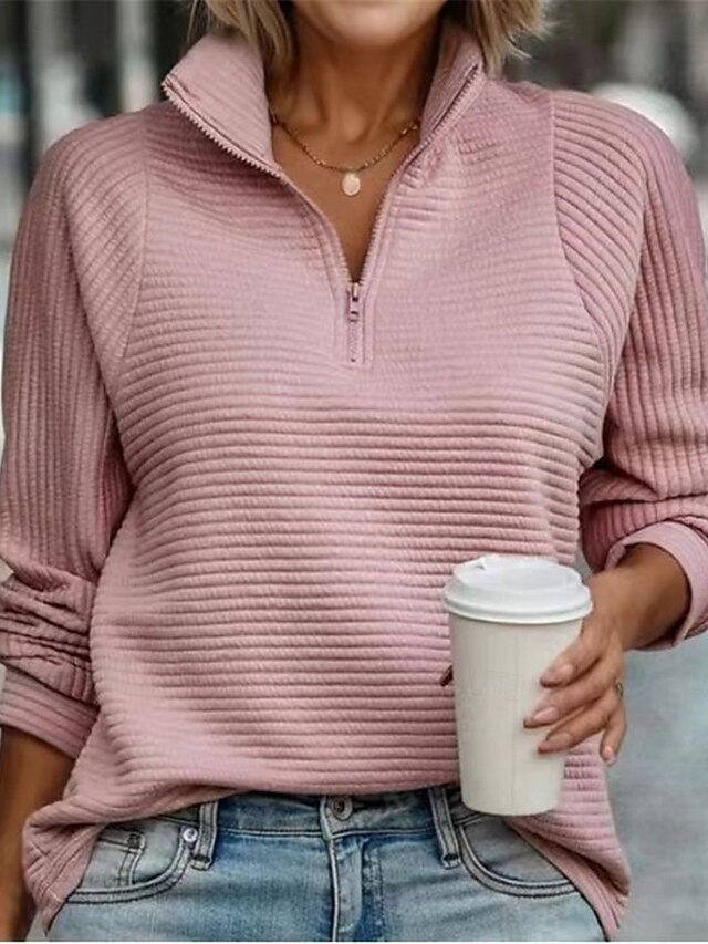 Women's Sweatshirt Casual Textured Plain Street Dailywear Turtleneck Zipper Long Sleeve White Pink Gray Fall Winter