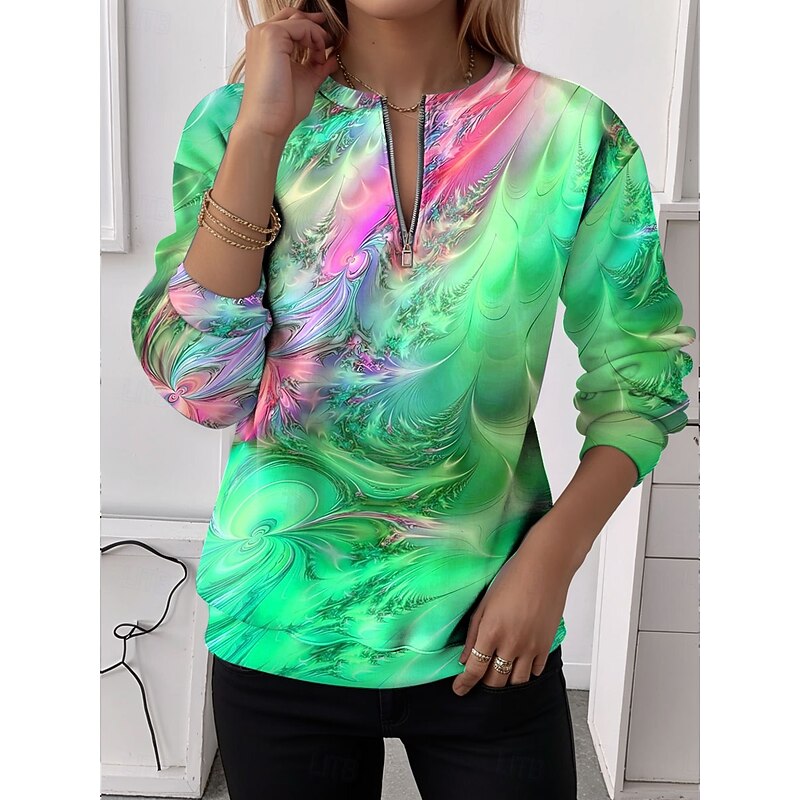 This Women's Quarter Zipper Sweater Graphic Abstract Casual Long Sleeve Crew Neck Regular Tops Street Dailywear Casual Half Print Blue Purple Orange Green Fall Winter combines elegant design with practical functionality. Every detail has been carefully considered to ensure you get the best possible experience. The magnificent construction means this product will serve you well for years to come.