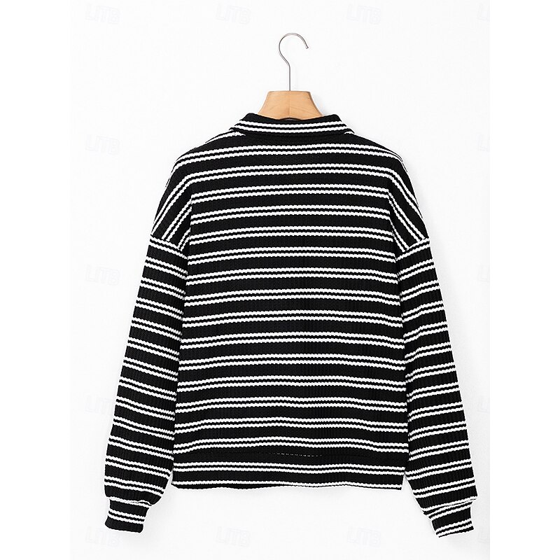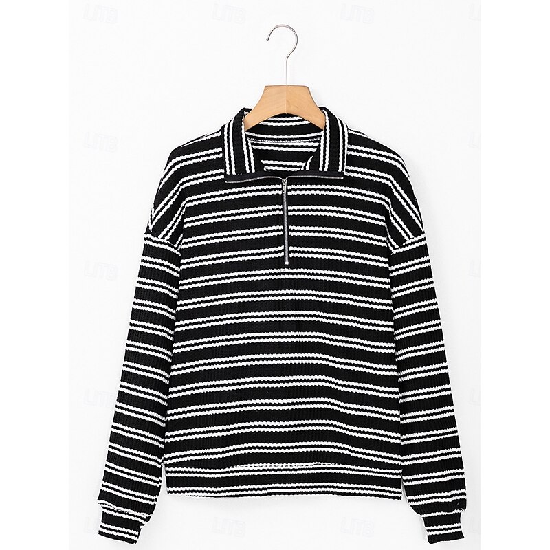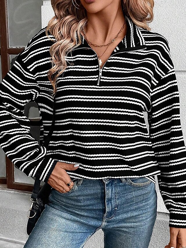 Women's Sweatshirt Casual Striped Street Dailywear Hoodie Zip Up Long Sleeve Black Fall Winter 8