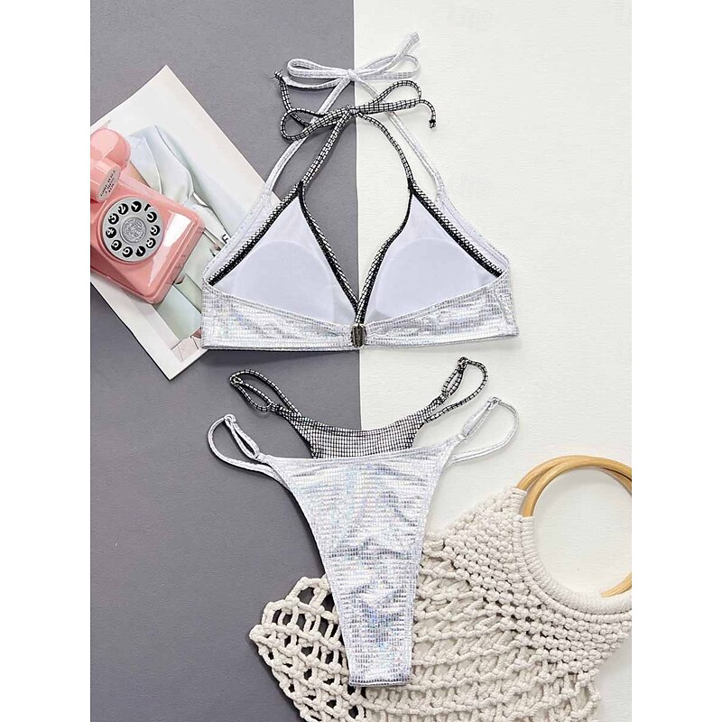 Why Choose Women's Swimwear Bikini 2 Piece Thong Swimsuit Backless Glitter Slim Vacation Beach Wear Solid Color Halter Neck Sleeveless Bathing Suits?