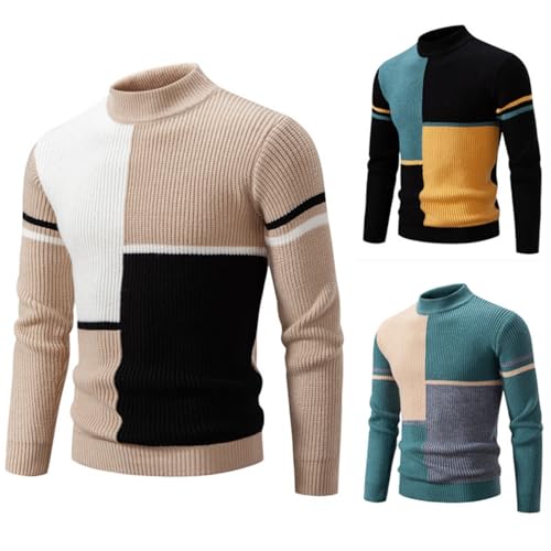 sizzling ! Mens Colorblocked Pullover Sweaters, Pullover Long Sleeve Color Block Cable Knit Long Sleeve Mock Neck Contrast Sweaters