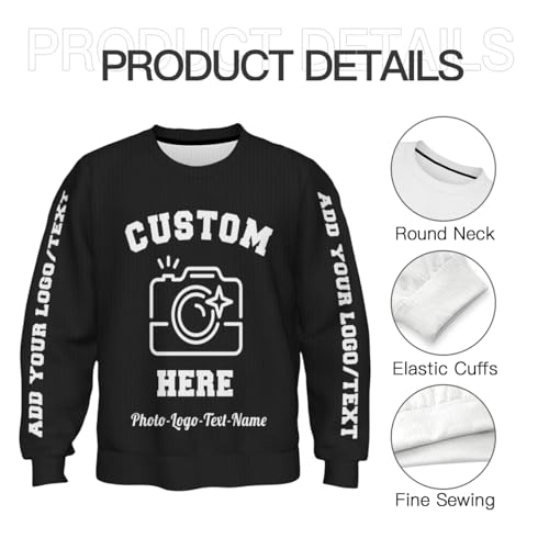 More information about Custom Sweaters Design Your Own Photo Logo Text Personalized Crewneck Sweaters Unisex Pullover Customized Sweater Gifts