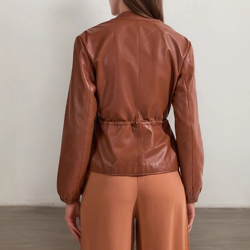 $41.99 - Women's Faux Leather Jacket Casual Jacket Comfortable Drawstring Zipper Fashion Plain Outdoor Street Going out Casual Daily Zipper Long Crewneck Regular Fit Long Sleeve Outerwear Brown Fall 2025. Shop for cheap Faux Leather Jackets online? Buy at lightinthebox.com on sale today!