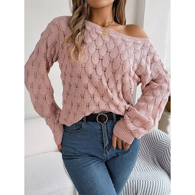 Why Choose Women's Sweater Casual supple Pure Color Crochet Crew Neck Knitted Hole Long Sleeve Regular Tops Knit Outdoor Daily Weekend Pink Blue Fall Winter?