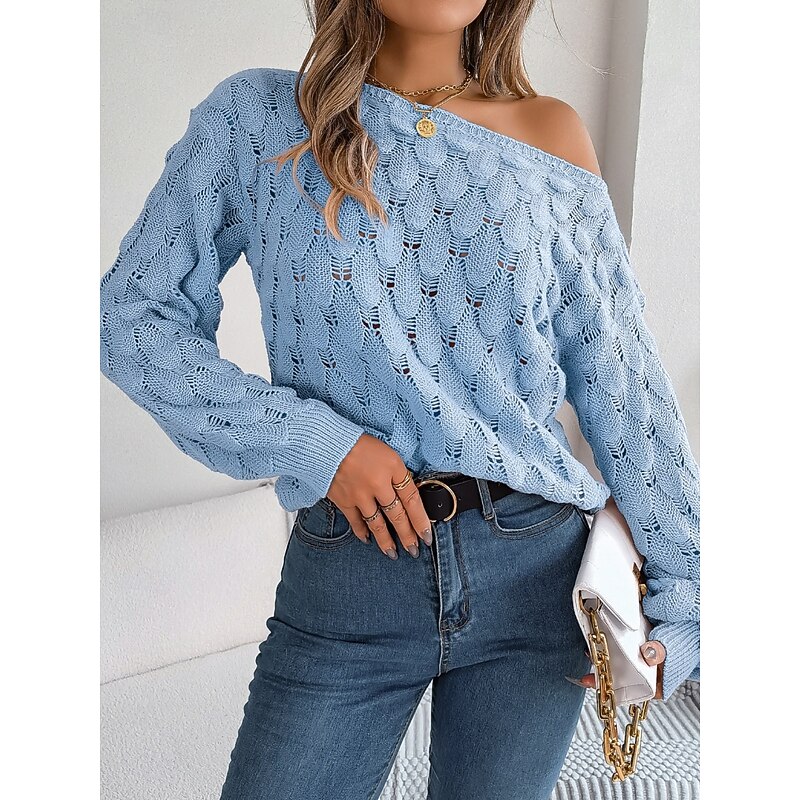 This Women's Sweater Casual silky Pure Color Crochet Crew Neck Knitted Hole Long Sleeve Regular Tops Knit Outdoor Daily Weekend Pink Blue Fall Winter combines elegant design with practical functionality. Every detail has been carefully considered to ensure you get the best possible experience. The top-grade construction means this product will serve you well for years to come.