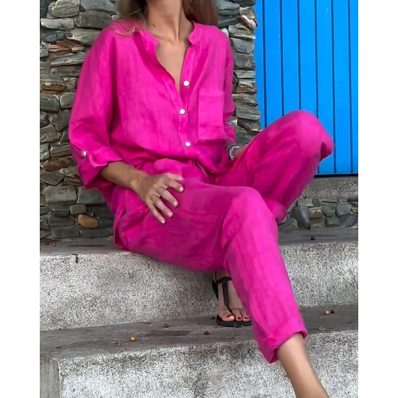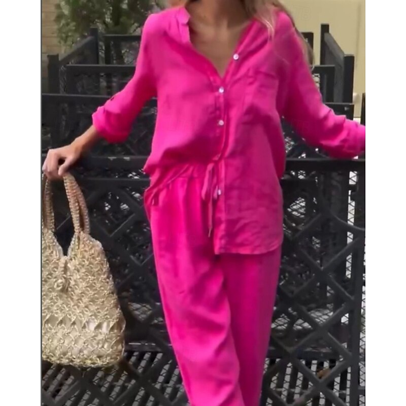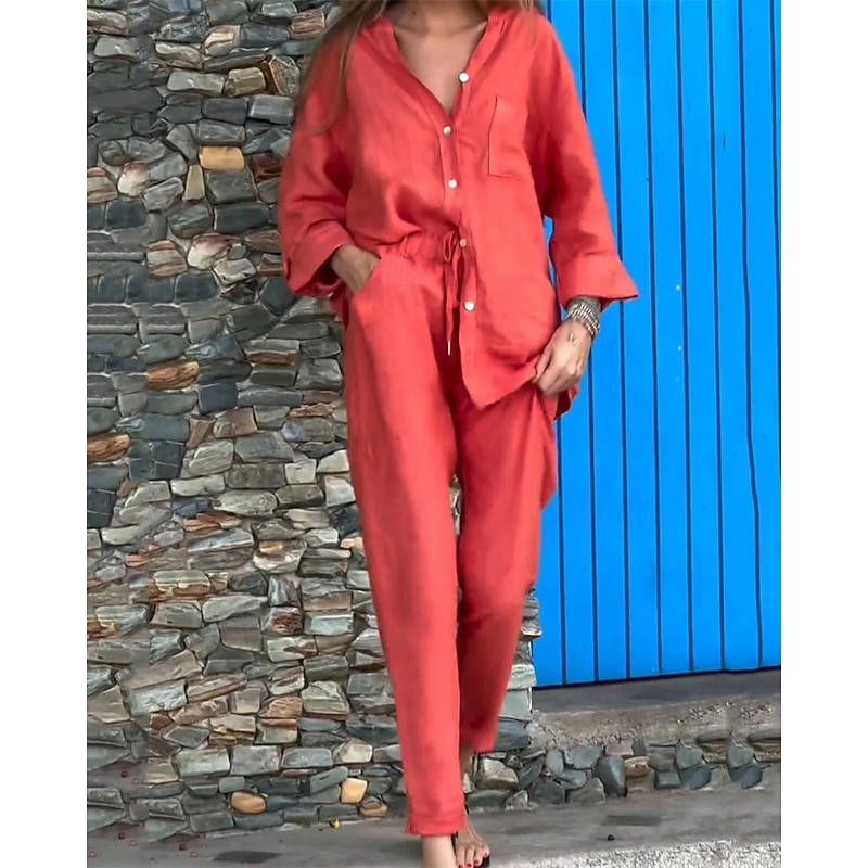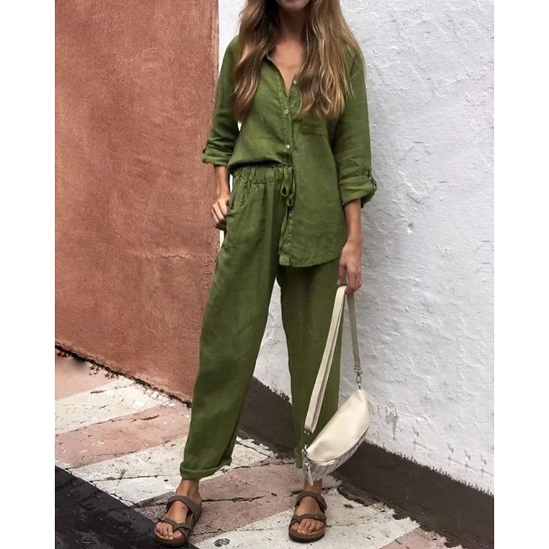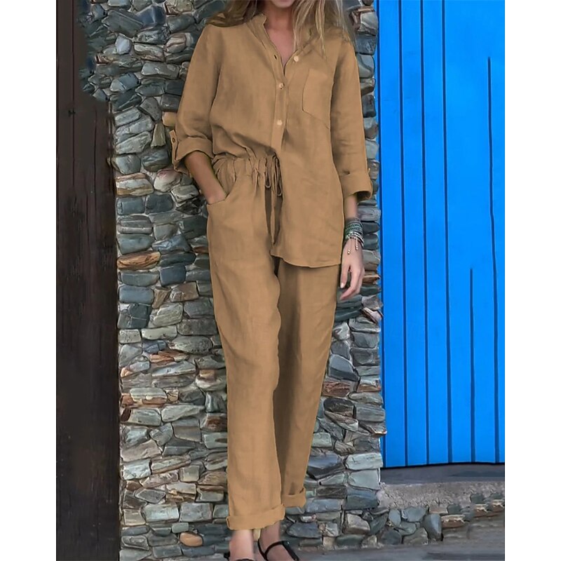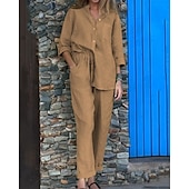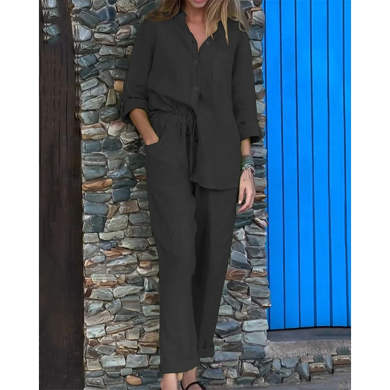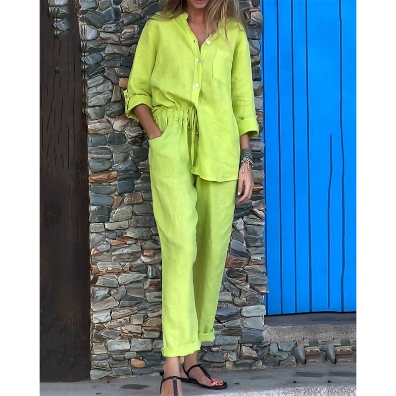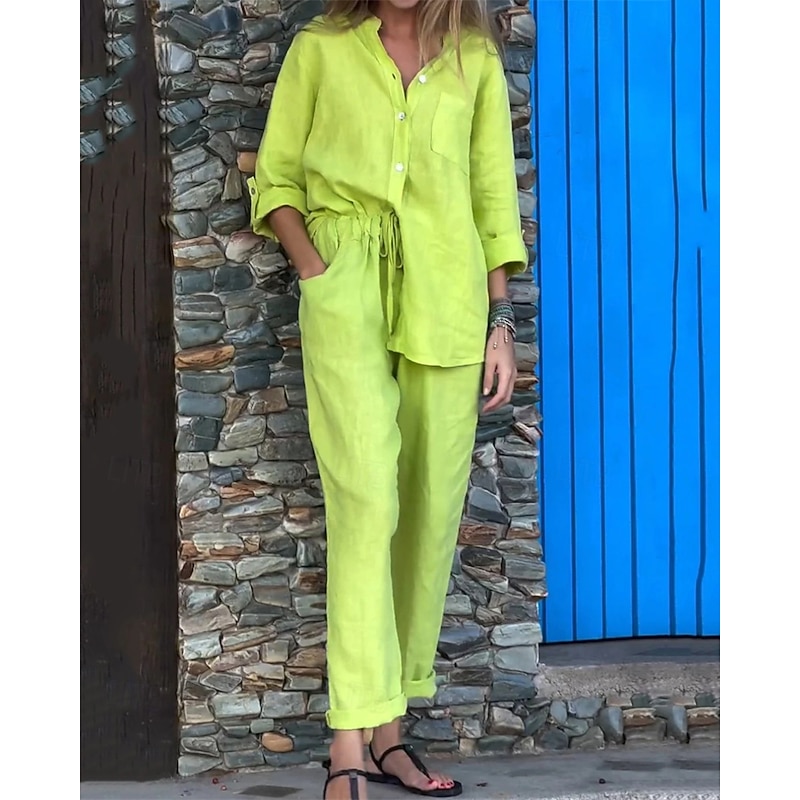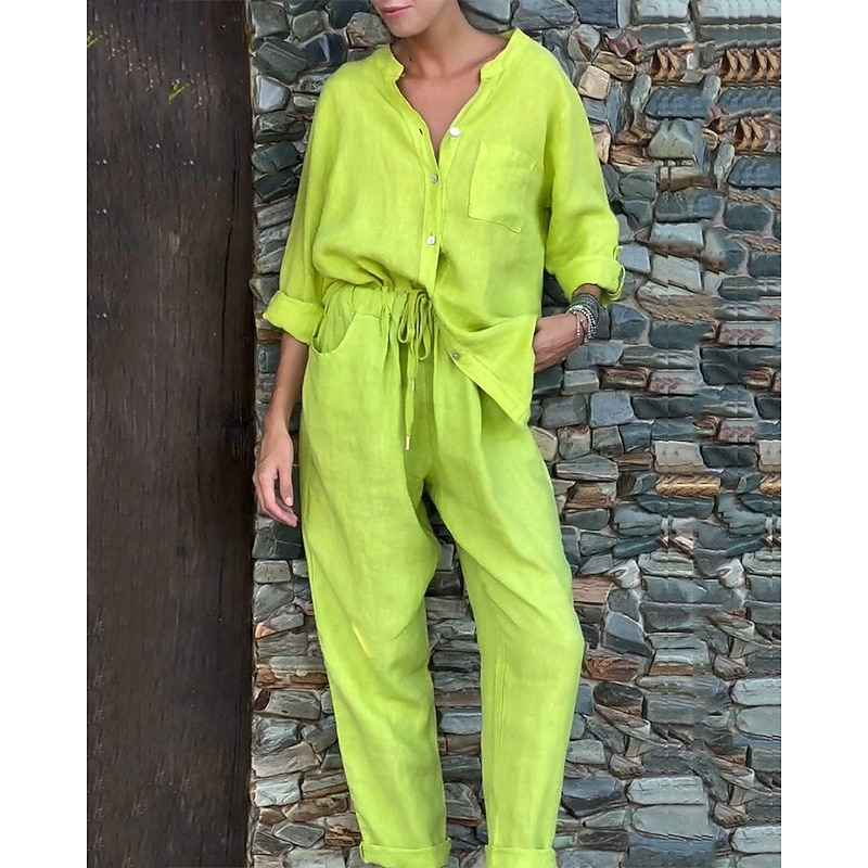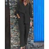 This Women's Fashion Streetwear Shirt Linen-Inspired Sets Two Piece Sets Linen Pants Pants Trousers Set Long Sleeve Shirt Collar Solid Color Drawstring Daily Wear Date Black White Yellow Spring Regular Fit combines elegant design with practical functionality. Every detail has been carefully considered to ensure you get the ultimate possible experience. The first-class construction means this product will serve you well for years to come.