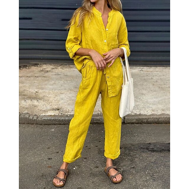 At www.nosterstudio.co.uk, we believe in providing our customers with only the best products. This Women's Fashion Streetwear Shirt Linen-Inspired Sets Two Piece Sets Linen Pants Pants Trousers Set Long Sleeve Shirt Collar Solid Color Drawstring Daily Wear Date Black White Yellow Spring Regular Fit is designed with attention to detail and high quality craftsmanship that you can see and feel. Whether you're looking for functionality, style, or both, this product delivers exceptional value.