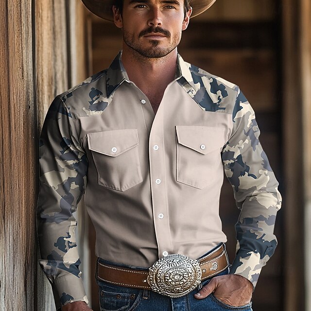 This Men's Camouflage Western Shirt Cowboy Shirt Long Sleeve Western Vintage Retro Outdoor Casual Spring Fall Turndown Button Up Collared Shirts Front Two Pockets Blue Apricot Gray combines elegant design with practical functionality. Every detail has been carefully considered to ensure you get the best possible experience. The magnificent construction means this product will serve you well for years to come.