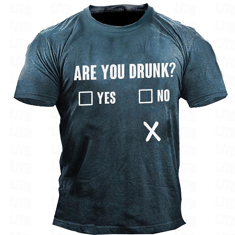 Highlights Product Highlights [Fabric] : Designed with a high-quality polyester fabric, this men's T-shirt is both cozy and breathable, perfect for warm spring and summer days. The material offers a micro-elastic fit that ensures ease of movement throughout any activity. [Fit] : This T-shirt features a regular fit, providing a timeless silhouette that's versatile and easy to style. The short sleeves and crewneck collar add to the relaxed, casual feel, making it suitable for a wide range of body types. [Design Highlights] : Showcasing a bold 3D graphic print with humorous text, "ARE YOU DRUNK? YES/NO," this shirt stands out with its playful and edgy design. It's a great choice for those who love street style and vintage-inspired looks. [Occasions] : Ideal for sports outdoor activities, holidays, and casual outings, this T-shirt is perfect for expressing personality and humor. Whether you're attending a casual gathering or enjoying a day out, it's sure to draw attention and spark conversation. [Size Range] : Available in a variety of colors including Blue, Dark Gray, Dark Blue, and Army Green. Sizes range from S to 3XL, catering to a broad range of customer needs and preferences.