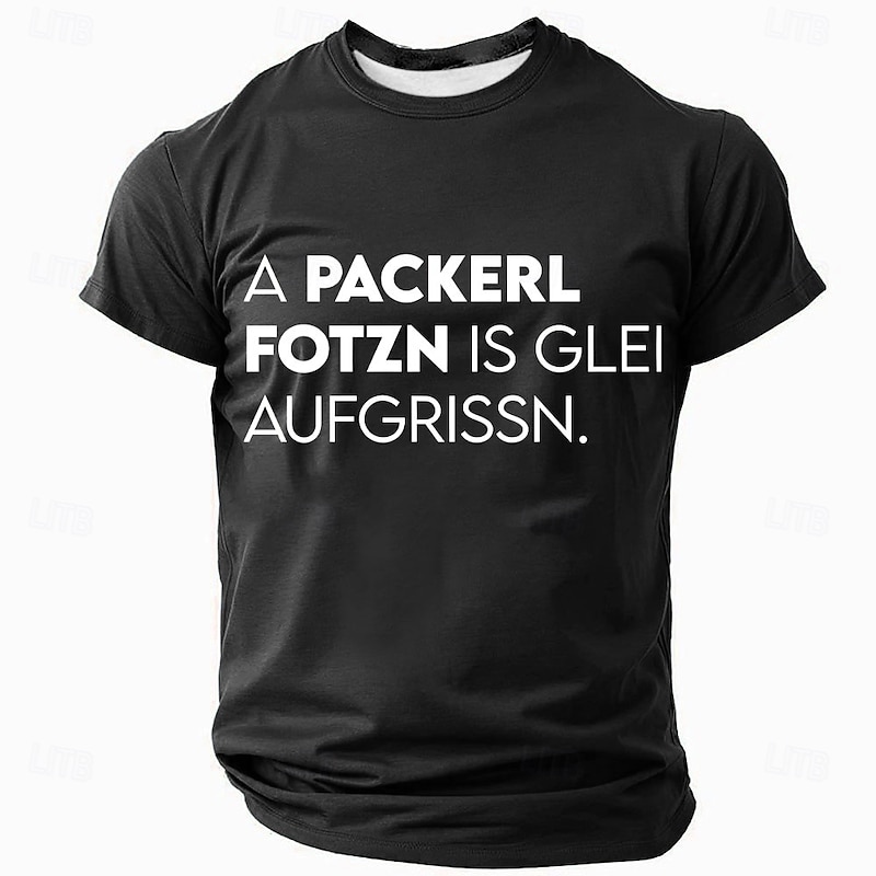 Why Choose Men's Funny German Graphic T-Shirt with 'A PACKERL FOTZN IS GLEI AUFGRISSN' Bavarian Slang Short Sleeve Tee?